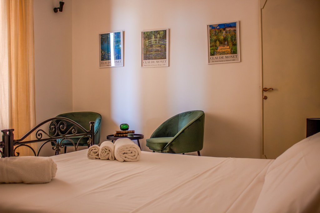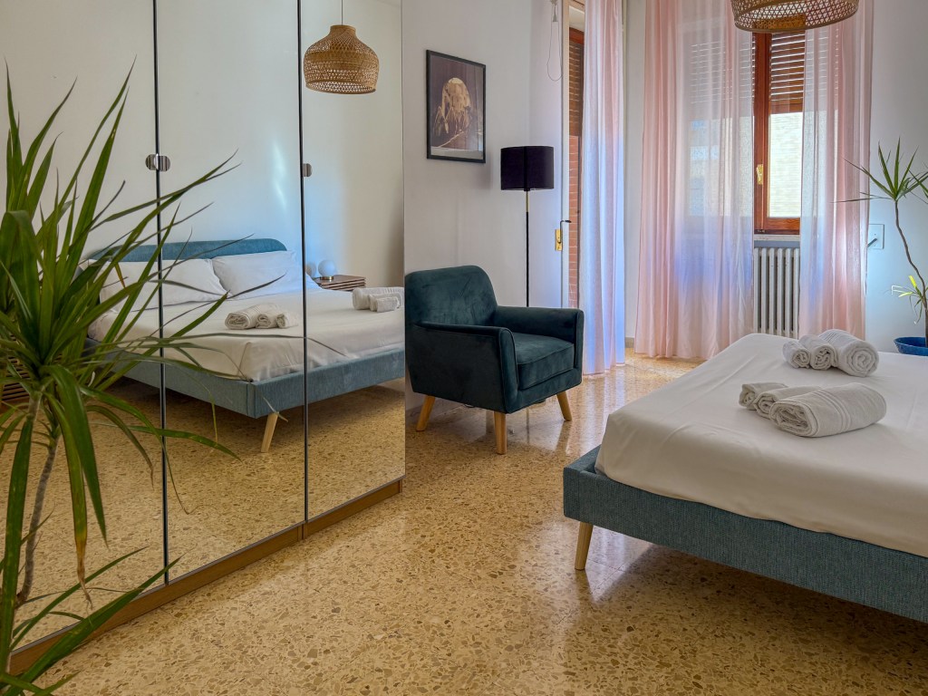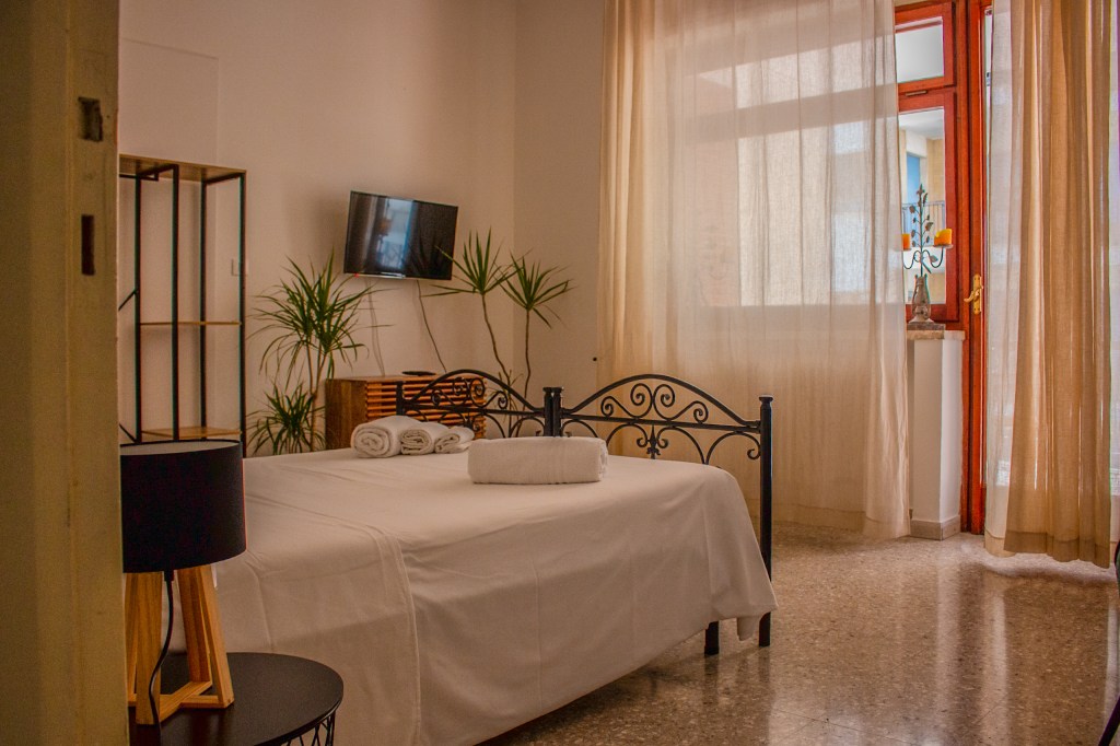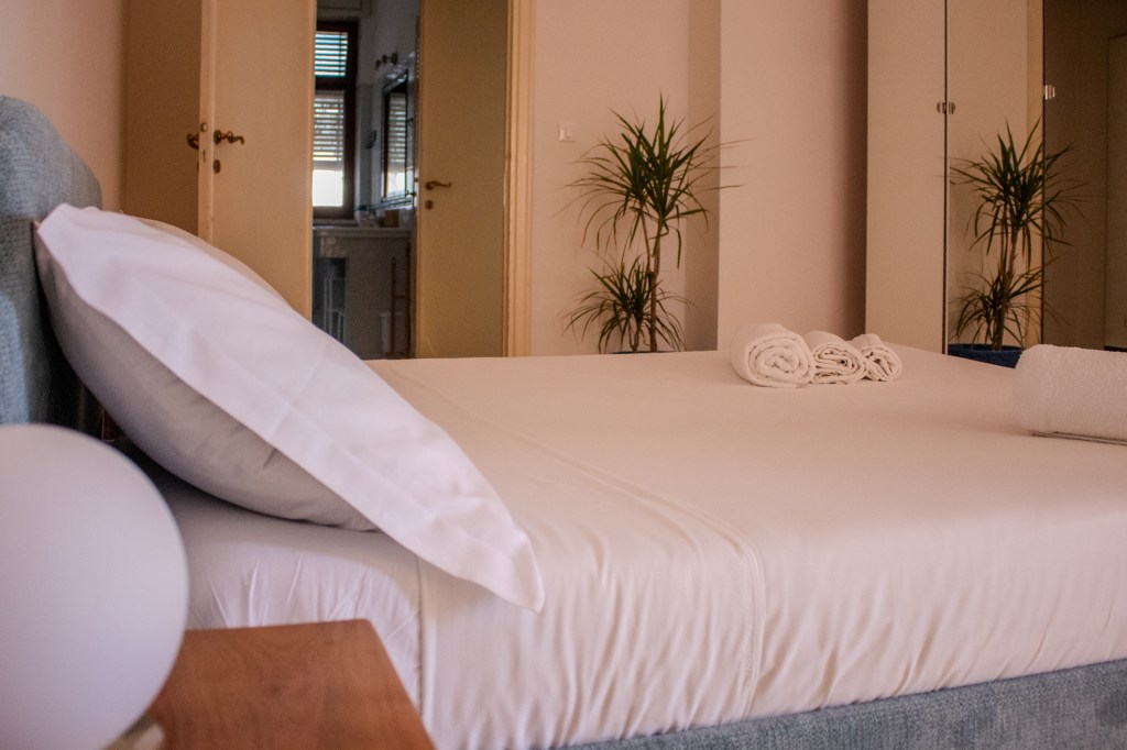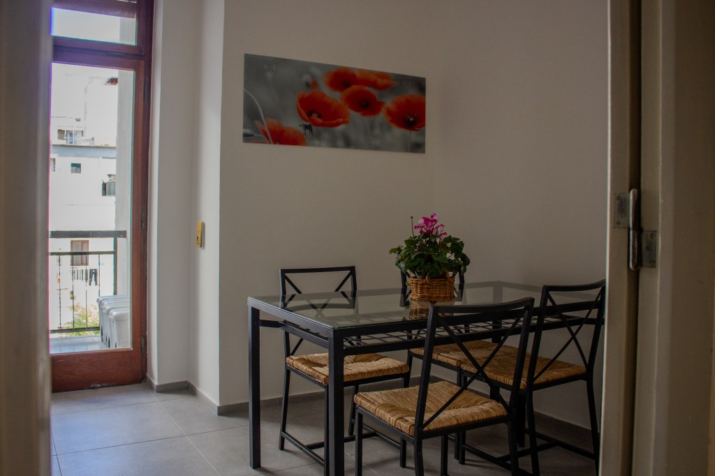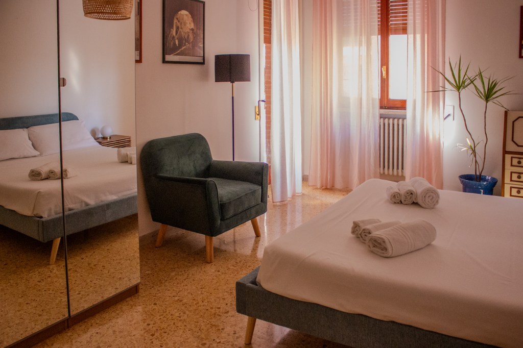 L’appartamento di 100 metri quadri può ospitare quattro persone ed è composto da due camere matrimoniali, una cucina abitabile interamente attrezzata, bagno dotato di lavatrice e due balconi.